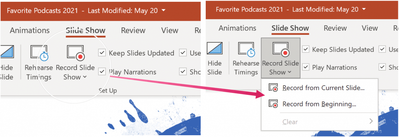- Record from Beginning: Ghi từ đầu đến cuối bản thuyết trình